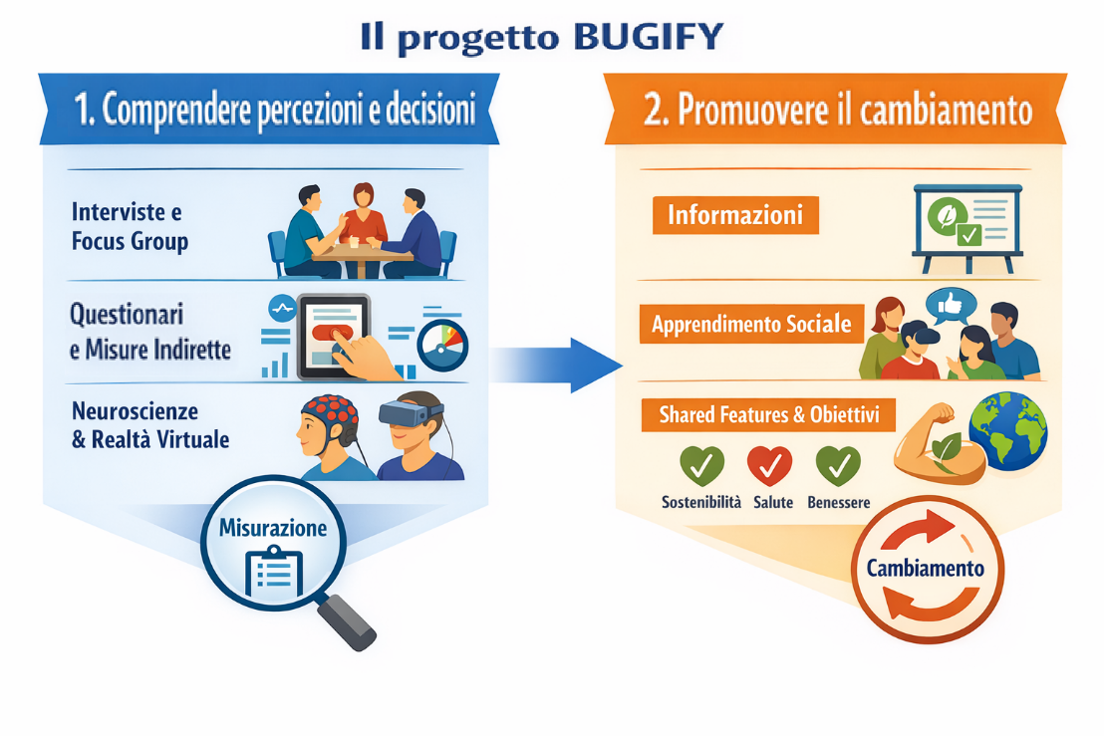 Per individuare strategie efficaci capaci di avvicinare le persone a questi cibi, come gruppo di ricerca BUGIFY, delle Università di Milano-Bicocca e Chieti, abbiamo sviluppato un programma multi-metodo. Integrando interviste, focus group, misure indirette (volte a rilevare le reazioni spontanee), realtà virtuale e neuroscienze, abbiamo valutato interventi applicabili su larga scala per ridurre l’impatto emotivo. L’utilità di questa ricerca supera il tema dei cibi con insetti, perché le strategie individuate sono applicabili anche a molti altri novel food o alimenti che suscitano reazioni avverse.