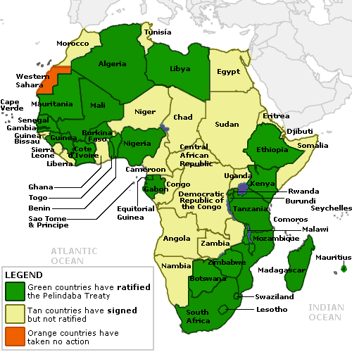 La zona libera da armi nucleari africana è entrata in vigore il 15 luglio scorso con il deposito del 28-esimo strumento di ratifica del trattato di Pelindaba da parte del Burundi. La prima proposta per la creazione in Africa di una zona libera da armi nucleari (Nuclear-Weapon-Free Zone, NWFZ) risale a una risoluzione dell'Assemblea Generale dell'ONU del 1961, dopo il primo test nucleare francese in Algeria; nel 1991, a seguito dell'adesione del Sud Africa al Trattato di Non Proliferazione (NPT), l'Organizzazione per l'Unità Africana creò un gruppo di esperti per la stesura della bozza di trattato, che venne completato a Pelindaba (Sud Africa) nel giugno 1995 e aperto alla firma a Il Cairo l'11 aprile 1996. Nel corso degli ultimi 13 anni tutti i 52 stati africani lo hanno firmato e finalmente si è raggiunto il numero di ratifiche necessarie per la sua entrata in vigore.