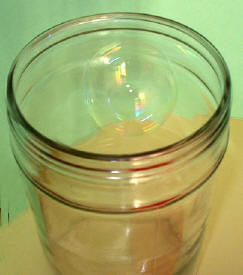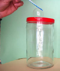 Se il barattolo è ben pieno di gas la bolla galleggerà in cima alla sua superficie. Appena scende un po’ al disotto dell’orlo si può chiuderla nel barattolo. La bolla è intrappolata!