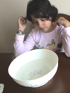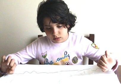 Francesca stira il filo fino a farlo diventare completamente diritto…